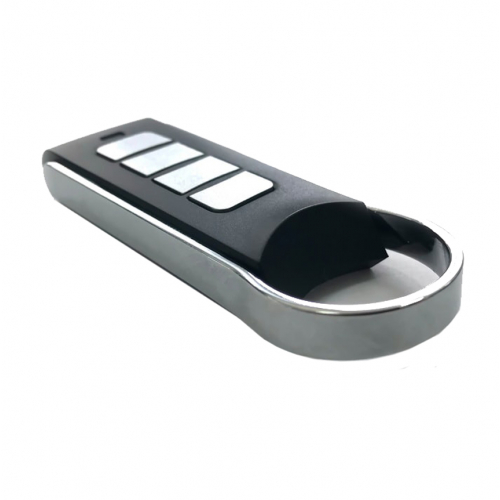 На черном пластиковом корпусе пульта для ворот ярко выражены четыре кнопки цветом металлик. На каждую из кнопок можно записать по 1 источнику для радиоуправления, такие, как управление поливом либо отоплением.